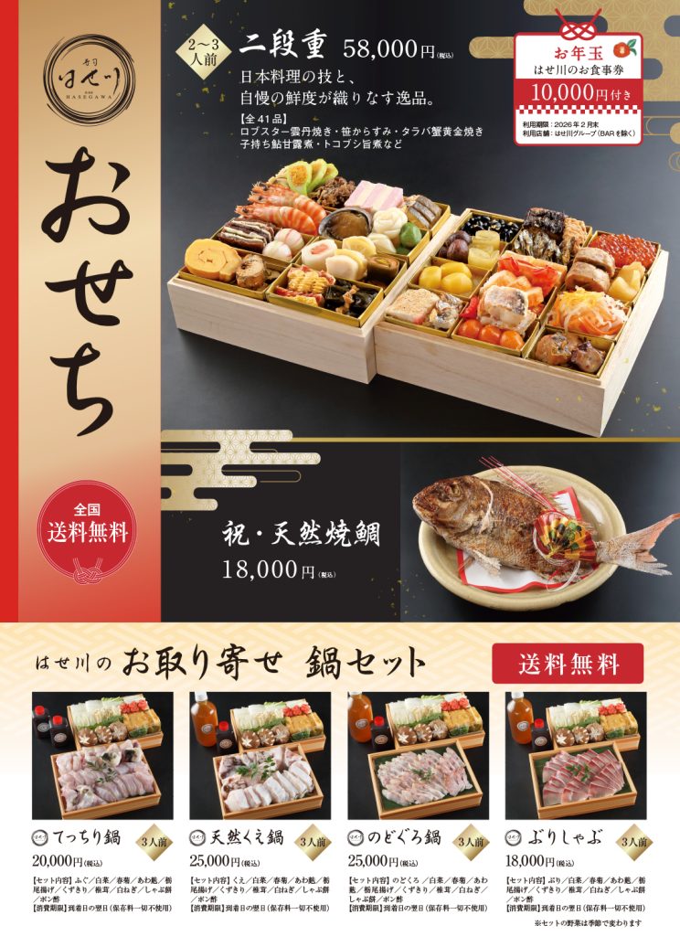 【はせ川のおせち】&【お取り寄せ鍋セット】の予約開始